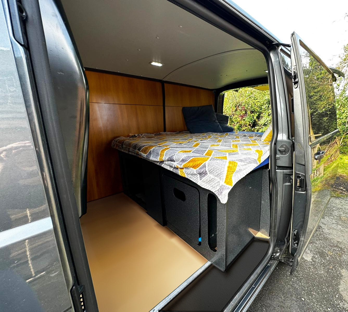 My Orbvans set up is the ideal solution for my lifestyle. I now have a large comfy bed with lots of storage options with a large area underneath, complemented with a front draw and cupboard option underneath the bed. I still have space to store my bike in the front. It's an excellent, affordable option for the weekend getaway van. I cannot recommend Rich and Orbvans anymore, excellent communication and service throughout. - Nick